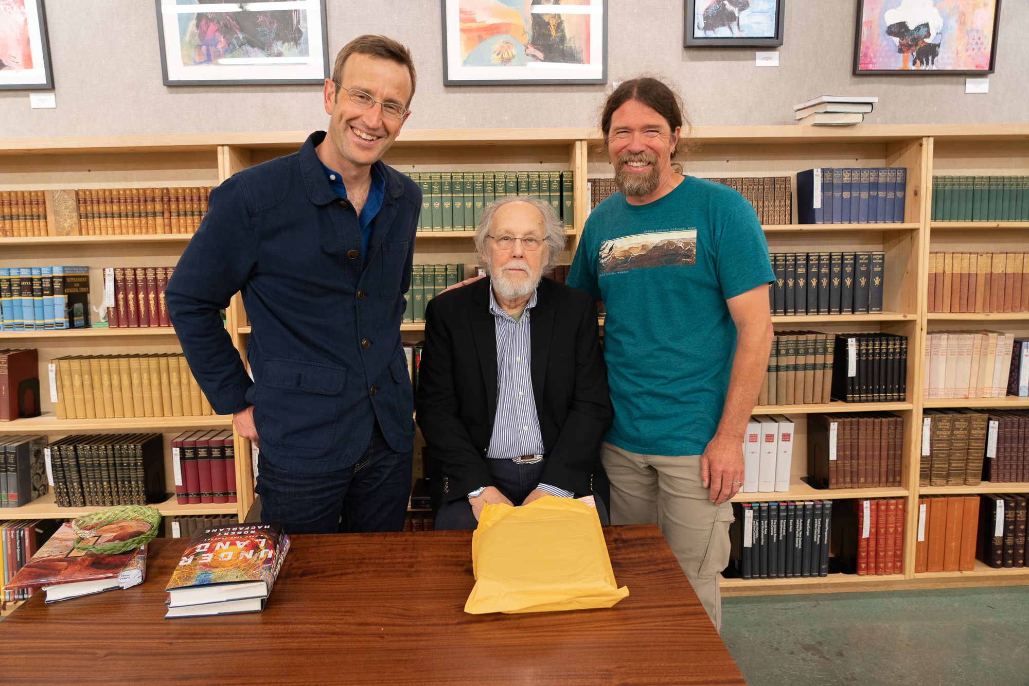I pushed for recording this conversation because any meeting of the minds between Robert, on one of the only trips in his life to the United States, and Barry, moving towards the end of a hard battle with cancer, was destined to be a rare event. I know that everyone in the audience, including long term friends, colleagues, and admirers of both writers, felt both the joy and weight of this historic moment. I found myself recalling the fullness of my day with Robert, walking trails and landscapes together, alongside the fullness of another journey I had taken years earlier spending months studying Barry’s archived papers at Texas Tech University and tracing his life as a writer.