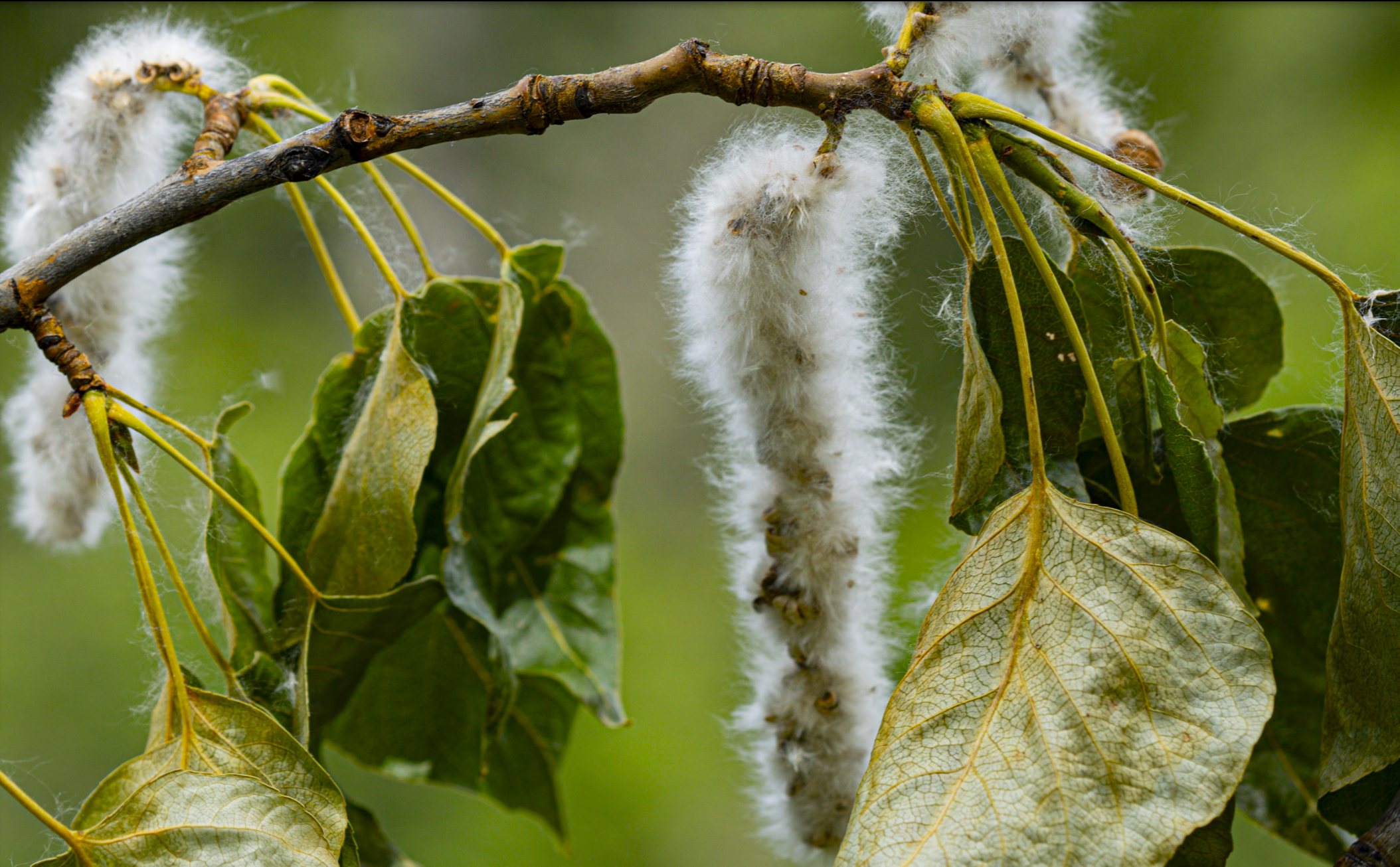 Cottonwood catkins mature into fluffy seeds that carpet the ground. Photos by David Lukas